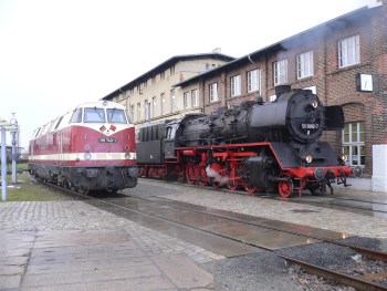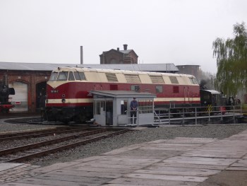 Genau wie die ebenfalls in unserem Museumsbestand befindliche 118 692 ist die 118 748 eine Vertreterin des Traktionswechsels von Dampf- auf Dieselloks bei der Deutschen Reichsbahn Ende der 1960er Jahre. Die "748" war bis 1998 zunächst bei der Deutschen Reichsbahn, später bei der Deutschen Bahn AG in Thüringen stationiert und wurde meist vom Bahnbetriebswerk Erfurt aus eingesetzt. News zum FahrzeugZeitungsartikel zum Fahrzeug | |||||||||||||||||