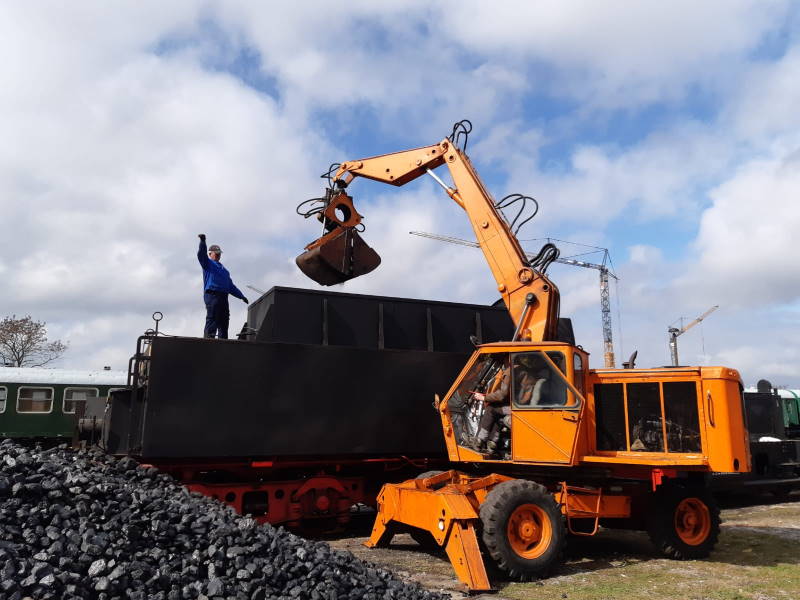 Some active members of the museum used the Easter holidays to further maintain the tender of steam locomotive 50 3570. First the coals were unloaded with our excavator.