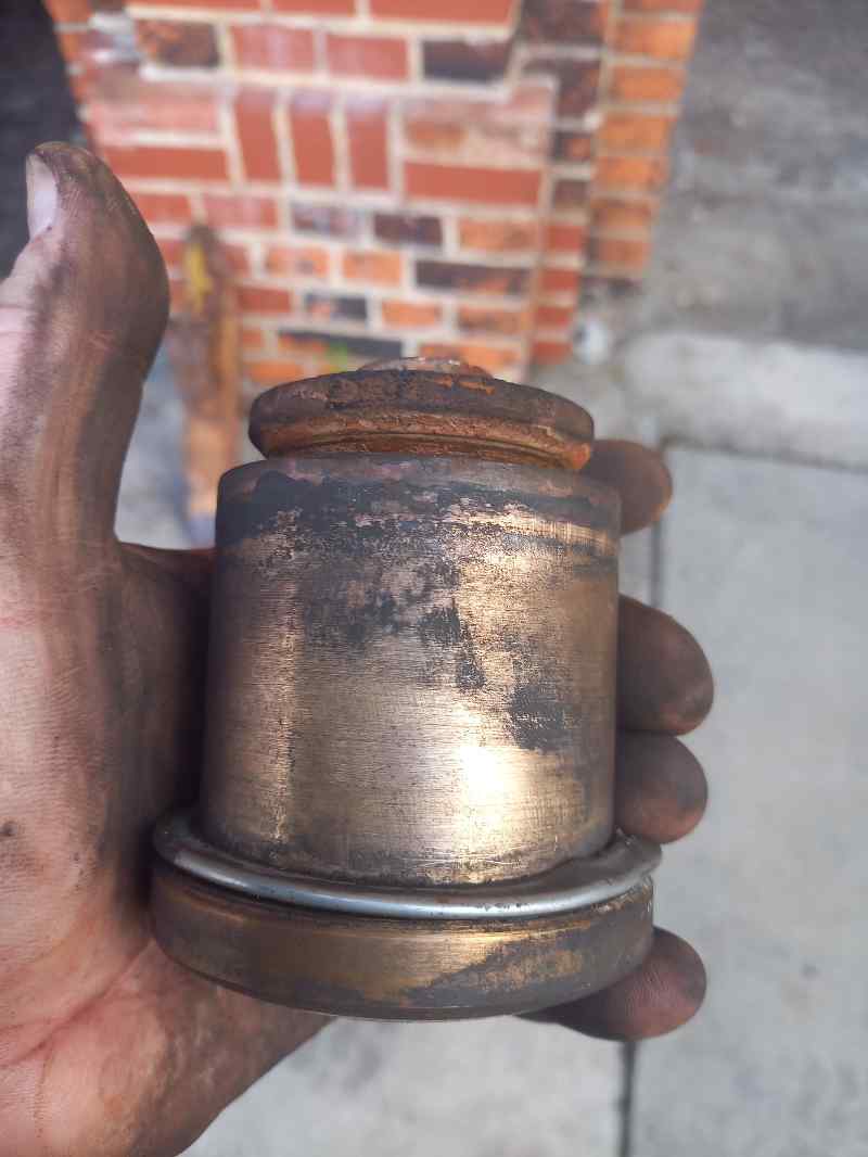 The following picture shows such a check valve. On the outside you can see the round seat. At the top, the movable insert is sticking out, which is coloured red and brown by the lime deposits.