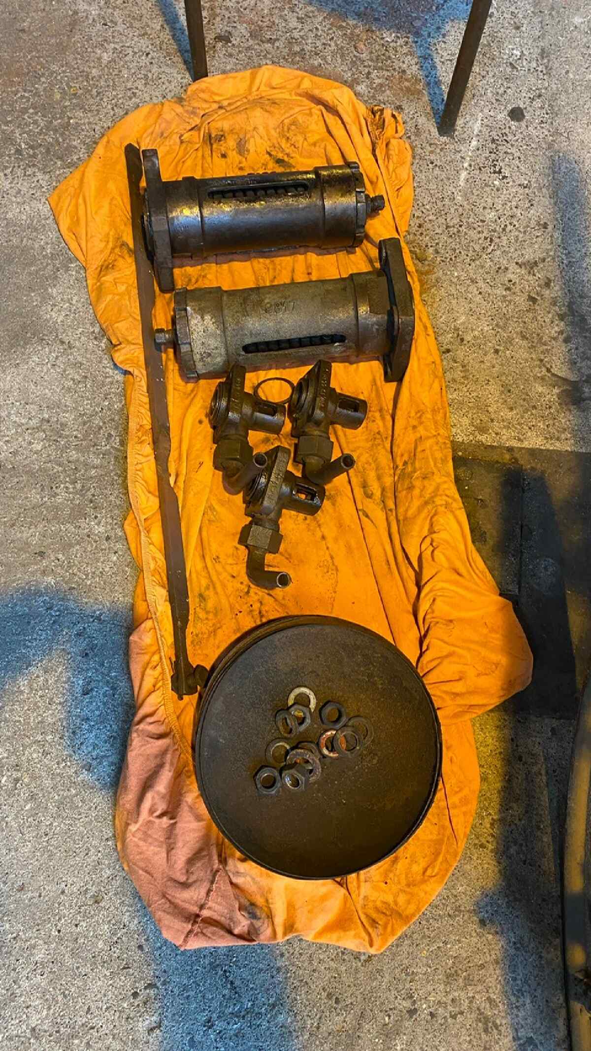 We also removed the drain valves and safety valves from the drive cylinders. One is used to drain condensation in the steam cylinders. The others are for emergency draining if too much condensation has collected in the cylinders and the movement of the pistons presses so hard against the cylinder covers that they could burst. It is well known that water cannot be compressed.
