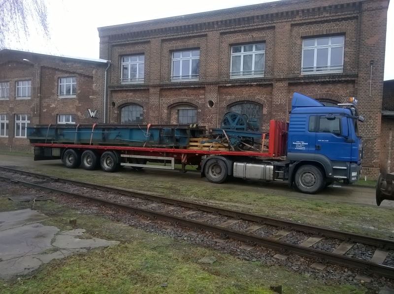 Anyone who remembers the Wittenberge depot as it was knows that there were two turntables and another locomotive shed. The shed was designed as a full roundhouse, i.e. a completely enclosed building with an internal turntable. Unfortunately, all - or what remained of it - was demolished or scrapped at the end of the last century. Now, you can never have enough space in a museum, and some time ago a plan was drawn up for the medium term to rebuild the turntable, the tracks and later parts of the building. And sometimes things happen sooner than you think. Thus we were able to acquire a 20-meter turntable, which was still relatively new, from the former railway depot in Parchim at short notice. This was dismantled in the last fewdays and the individual parts shipped to Wittenberge. The next move will be to recondition its components, then build a new pit. Our thanks go to all involved for the fast and uncomplicated handling. The photos were taken by Dirk Endisch on 12. and 13.1.2016.