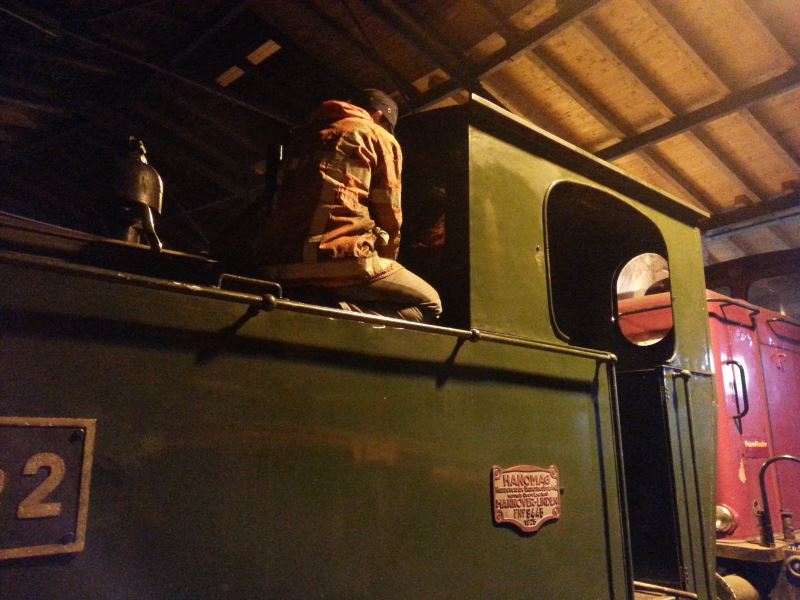 Another little task was to take out our steam loco Emma's front spectacle glasses. Over the course of time, the glasses had become loose in their frames and rattled when going over every rail joint. To improve running comfort, they were replaced with new sealant.