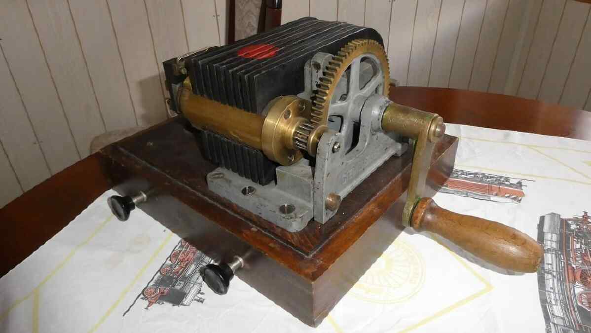 He began collecting railway chimes in 1984. These were devices for announcing trains from one railway station to another, i.e. from one station to the next and all barrier keepers and signal boxes in between. They all had to be informed when a train left the neighbouring station in their direction. And this was done by means of sound signals in the form of chimes. How were these chimes generated? The station masters - today they would be called traffic controllers - of each station had an inductor crank in their office that generated electricity.