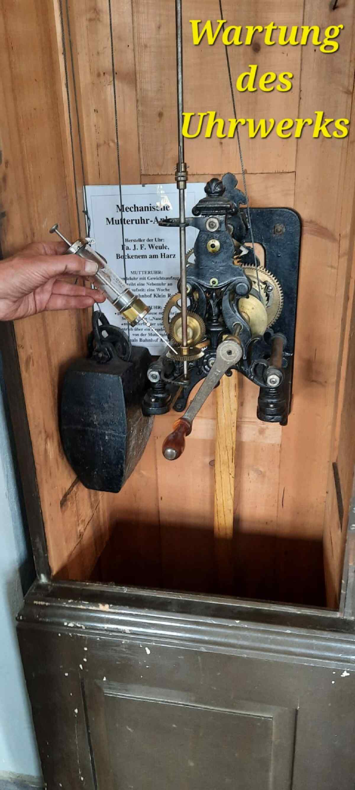 The clockwork mechanism was used to strike the bells on the ringing mechanism several times, e.g. six times in succession. To ensure that the bells always worked, they had to be serviced regularly and their clockworks wound up. This task was the responsibility of line marshals/line keepers on all railway lines.