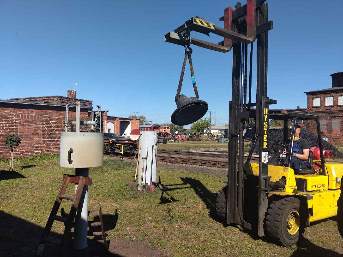 On Sunday, the nationwide Open Monument Day took place. We also took part in this event and were able to tell quite a few visitors about our activities to preserve our monument. Today we can also report on another small sensation. Unfortunately, the well-known Stendal specialist book author and railway enthusiast Wolfgang List passed away some time ago. However, we were able to come to an agreement with the family that our museum will take over and exhibit the extensive collection of bell mechanisms. These are various devices, some of them the size of telephone booths, which were used to signal incoming and outgoing trains by morse signals before the digitalisation of the railway. Wolfgang List had saved such equipment from being scrapped in many parts of Germany and restored it to working order in his private collection. Now the parts will be given their rightful place in Wittenberge. We would like to thank the relatives once again for their willingness to hand over the collection to us. A few days ago, we started to set up the large exhibits in our outdoor area.