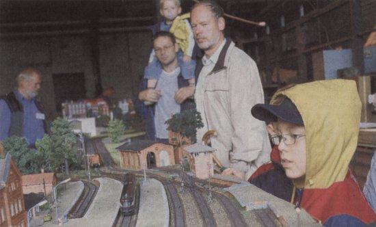 Große und kleine Lokomotivenfreunde bestaunen die fahrende Modelleisenbahn.